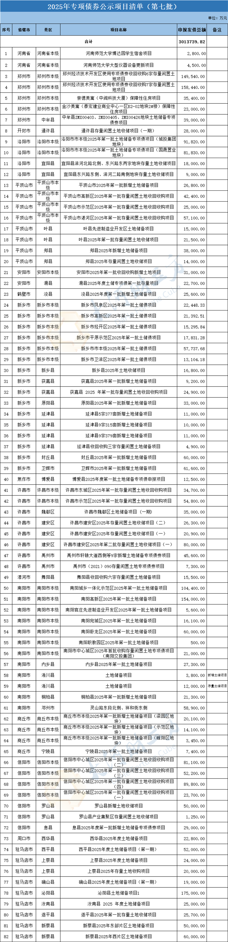 【大河财立方消息】12月3日,河南省财政厅公示2025年第七批评审通过的专项债券项目(非拟发行项目)配资世界门户首页,公示时间为2025年12月3日-2025年12月7日。