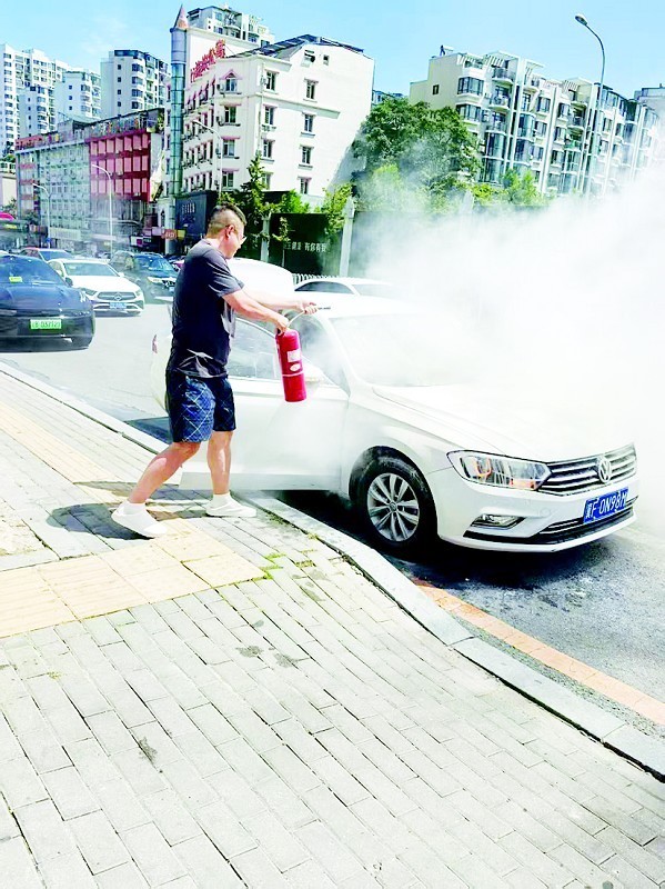 发现火情后迅速组织灭火 当天上午,一名女司机与同伴驾车行至西安路时,车内突然出现刺鼻气味。她们警觉地将车停在中长街地铁站D口路边。“下车后我们才发现车冒烟了,当时真是挺慌的,就跑到临街商铺接水试着灭火。”女车主说道,令女车主意外的是,这家店铺的四名工作人员迅速冲出,伸出援手。 据成都车游天下网络科技有限公司大连分公司总经理周华永介绍,公司办公地距事发地仅20米。看到两位女士慌张敲门,他立即开门询问情况。“出门一看,车冒出的烟已很大了,我赶紧让她们进屋接水。”周华永回忆道。到达车旁后,发现仅靠一桶桶水往上浇很难扑灭火情,“当时,车辆前中网和防火墙周围已出现明火,且周围停放的车辆较多。”情况紧急,周华永迅速调动店内3名女员工,有人联系车主挪车,有人到旁边商铺借灭火器,有人接水,他则用店里和借来的灭火器对准明火反复喷射,这其间,员工协助车主拨打了119。 安全知识和从业经验发挥作用 为了尽快灭火,车主欲掀开引擎盖,周华永果断制止:“没足够水和灭火器,明火遇到氧气充分燃烧,有爆燃危险!”周华永说,由于他从事汽车租赁行业,接受安全生产培训时就学过如何应对汽车自燃,“当时我们手里一共有四支灭火器,水也不充足,当务之急是给车辆降温,尽量扑灭明火,坚持到消防队来。”很快,消防员抵达现场,周华永又指导消防员迅速打开引擎盖,最终消防员用消防水枪扑灭火源。 事后,周华永才发现自己满身干粉,但成功阻止火势蔓延令他倍感欣慰。作为甘井子区椒金山街道的人大代表,他说:“相信任何人遇到这种情况都会伸出援手,何况我还有一份责任感和使命感。”女车主则感激地说:“特别感谢他们的及时相助。”为表达谢意,她买了水果送到店里,还支付了灭火器的费用。